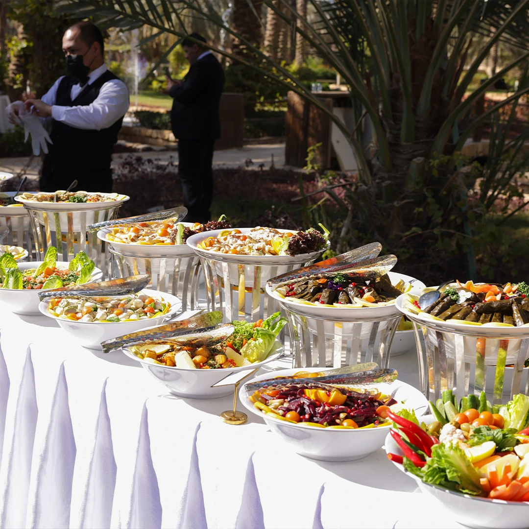 - بوفيهات متنوعة: شرقي، غربي، آسيوي، بحري، مشويات وأطباق سعودية.